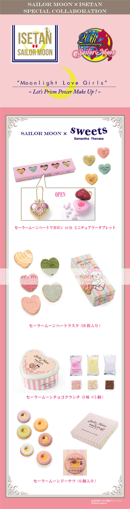 - เซเลอร์มูน X Sweets Samantha Thavasa ขนมมาการองทรงหัวใจ พร้อมกับ Miniturely Tablet: ราคา 2,500 เยน (ไม่รวมภาษี)